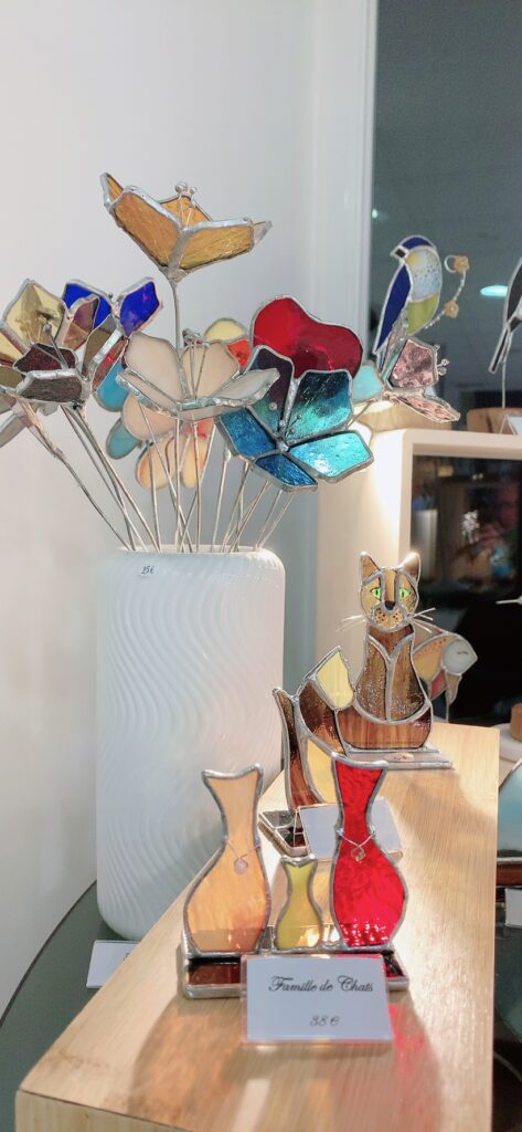 Venez découvrir mes créations en vitrail : des pièces à poser, des suspensions lumineuses, des lampes, des décorations pour l’extérieur, et d’autres œuvres originales. Sans oublier mes bijoux uniques peints à la main, conçus avec soin et passion dans mon Atelier situé à Yerres.