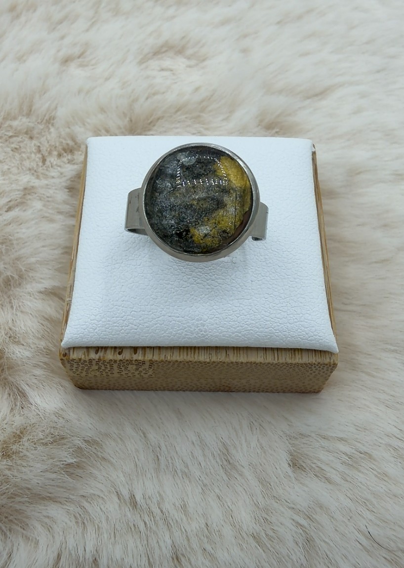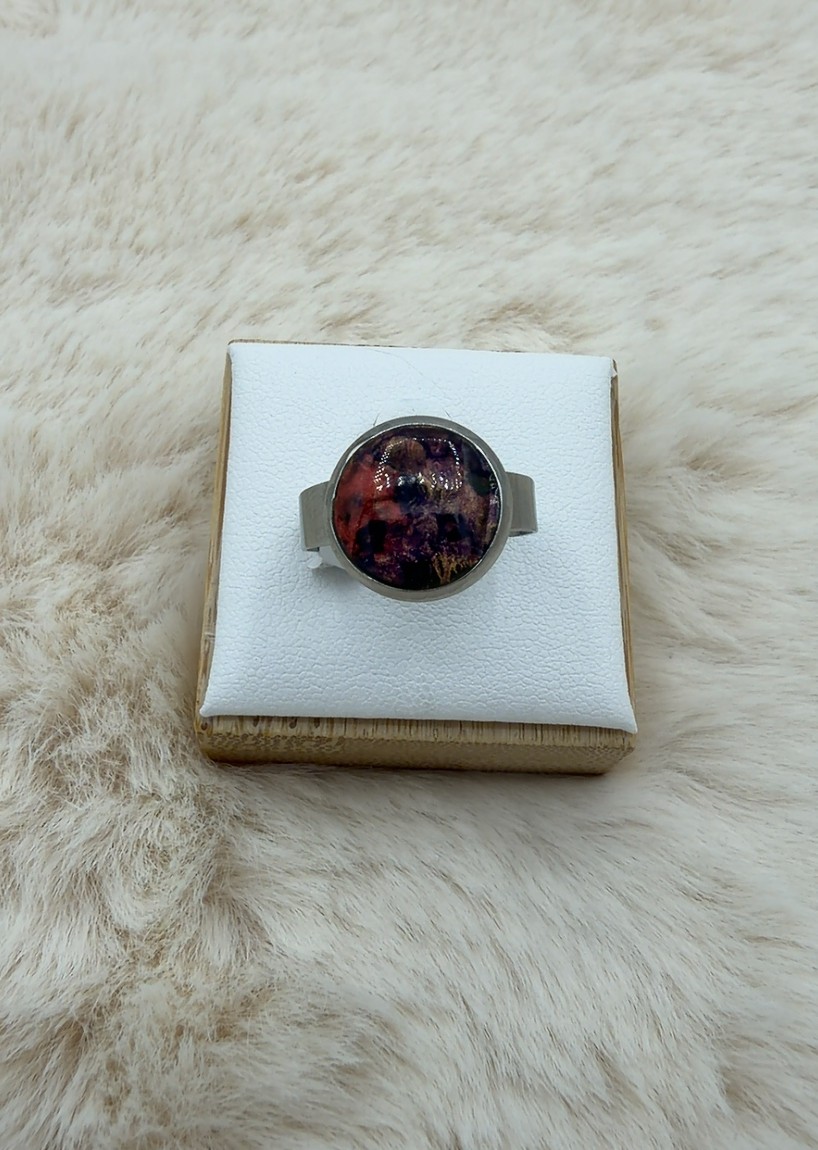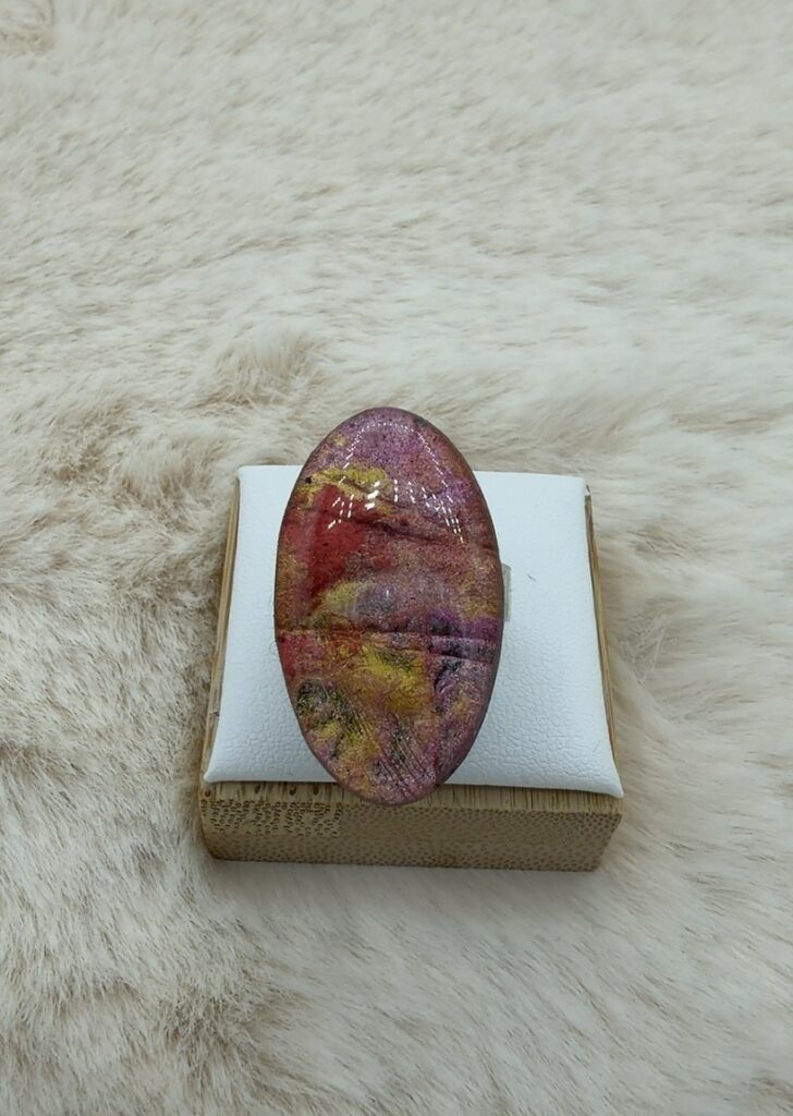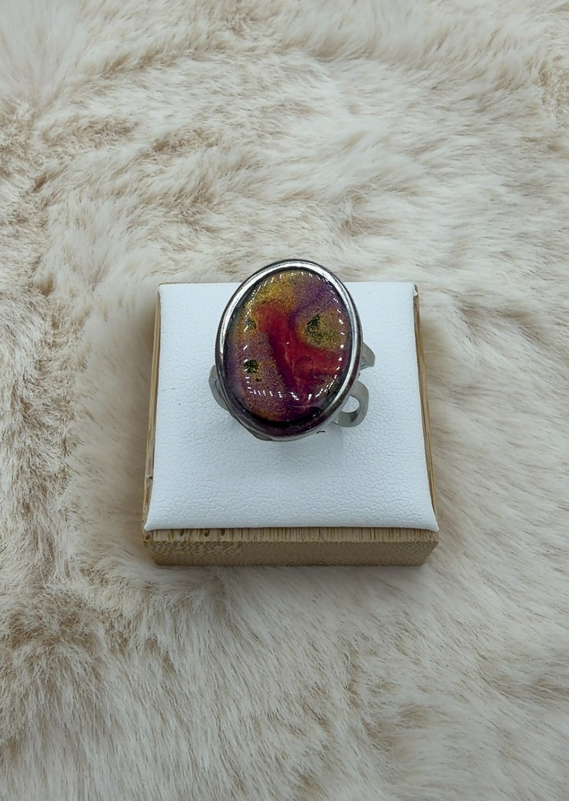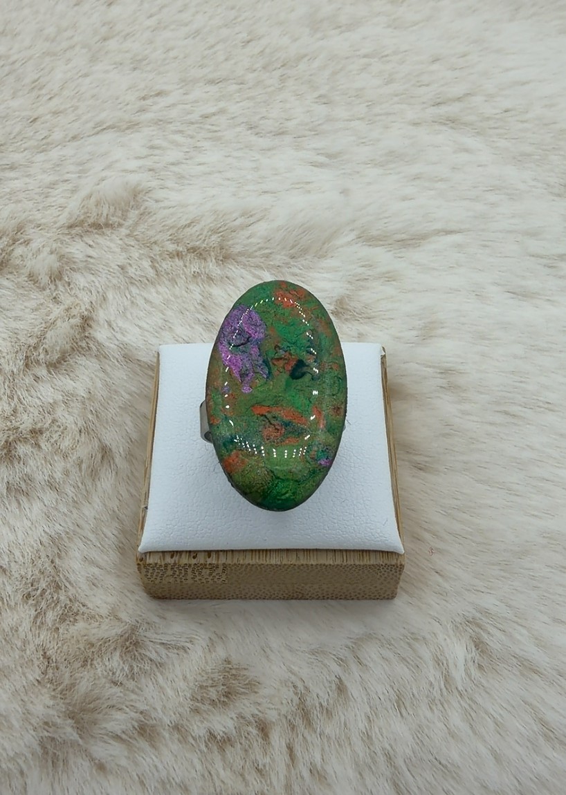Découvrez nos magnifiques bagues, chacune étant une pièce unique, soigneusement peinte à la main ou teintée avec des alcools et peintures spécialement sélectionnés, appliqués sur de la pâte polymère. Chaque bague est dotée d’un socle en acier inoxydable, garantissant durabilité et élégance. De plus, toutes nos bagues sont réglables, vous permettant de les ajuster parfaitement à votre doigt.