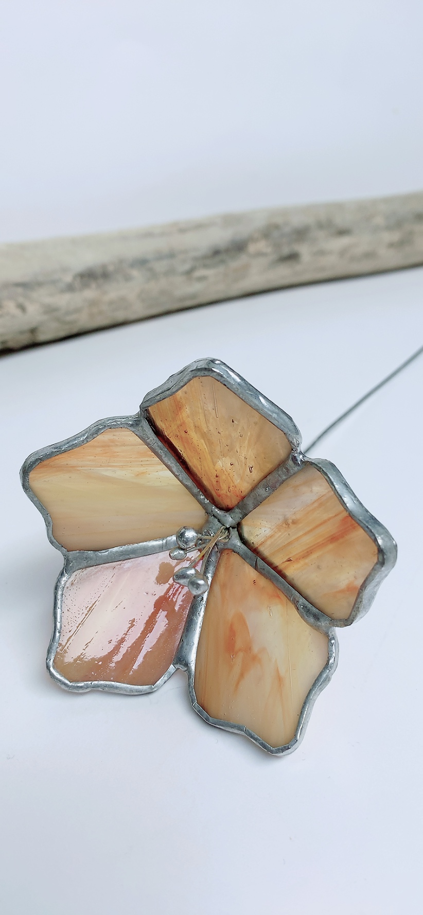Mes fleurs sont montées sur une tige en fil de cuivre, magnifiquement recouverte de soudure à l’étain, garantissant à la fois robustesse et esthétisme. Chaque verre utilisé est soigneusement sélectionné pour ses caractéristiques : opalescent, translucide ou opaque, offrant ainsi une variété de textures et de couleurs qui illumineront n’importe quel espace.
